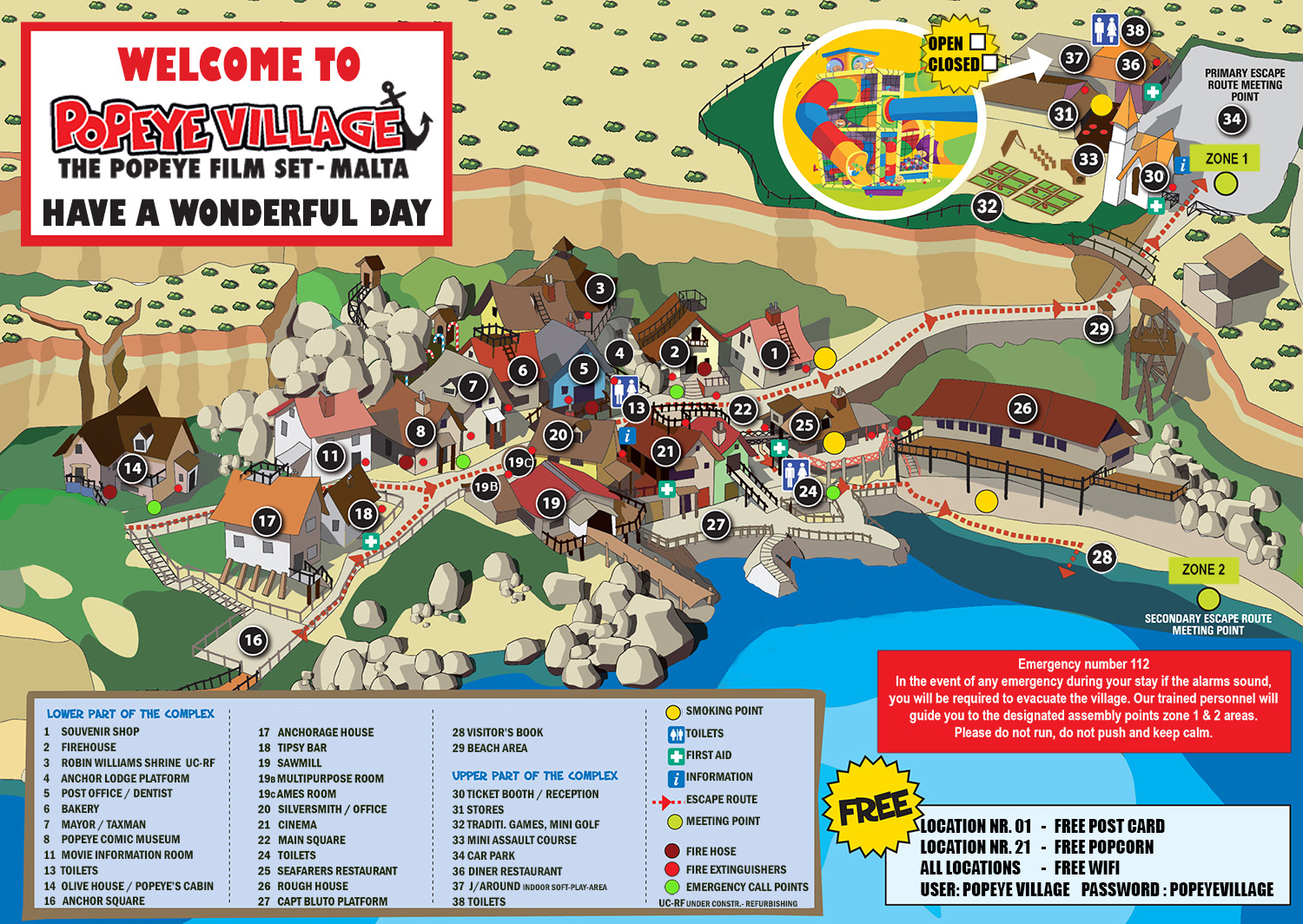 'Popeye Village Malta', the Film Set of the 1980 Musical Production “Popeye”, also known as 'Popeye Village' today is one of Malta's major tourist attractions. The film set was constructed in Anchor Bay during the last 7 months of 1979.