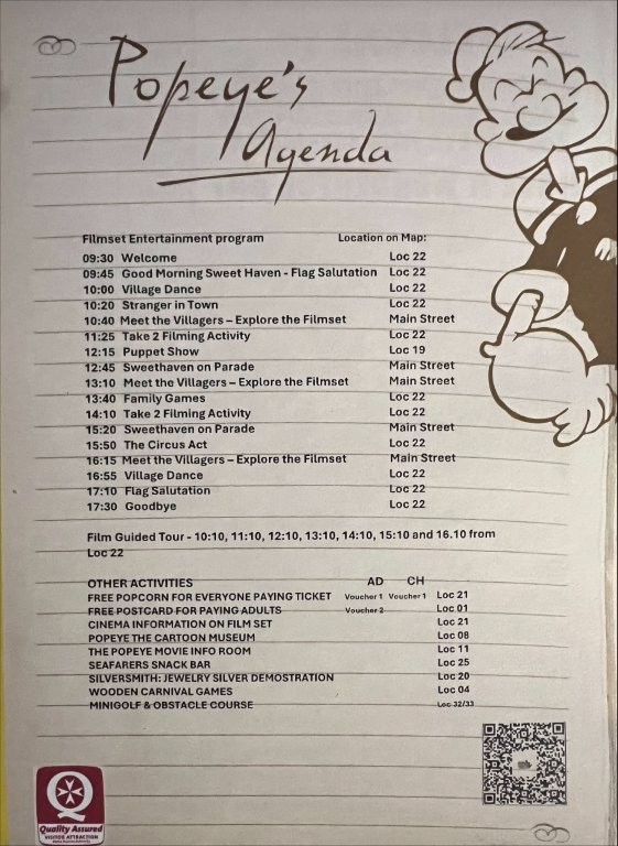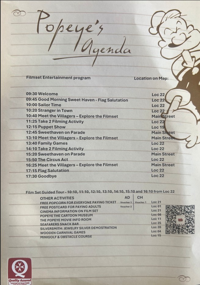 'Popeye Village Malta', the Film Set of the 1980 Musical Production “Popeye”, also known as 'Popeye Village' today is one of Malta's major tourist attractions. The film set was constructed in Anchor Bay during the last 7 months of 1979.